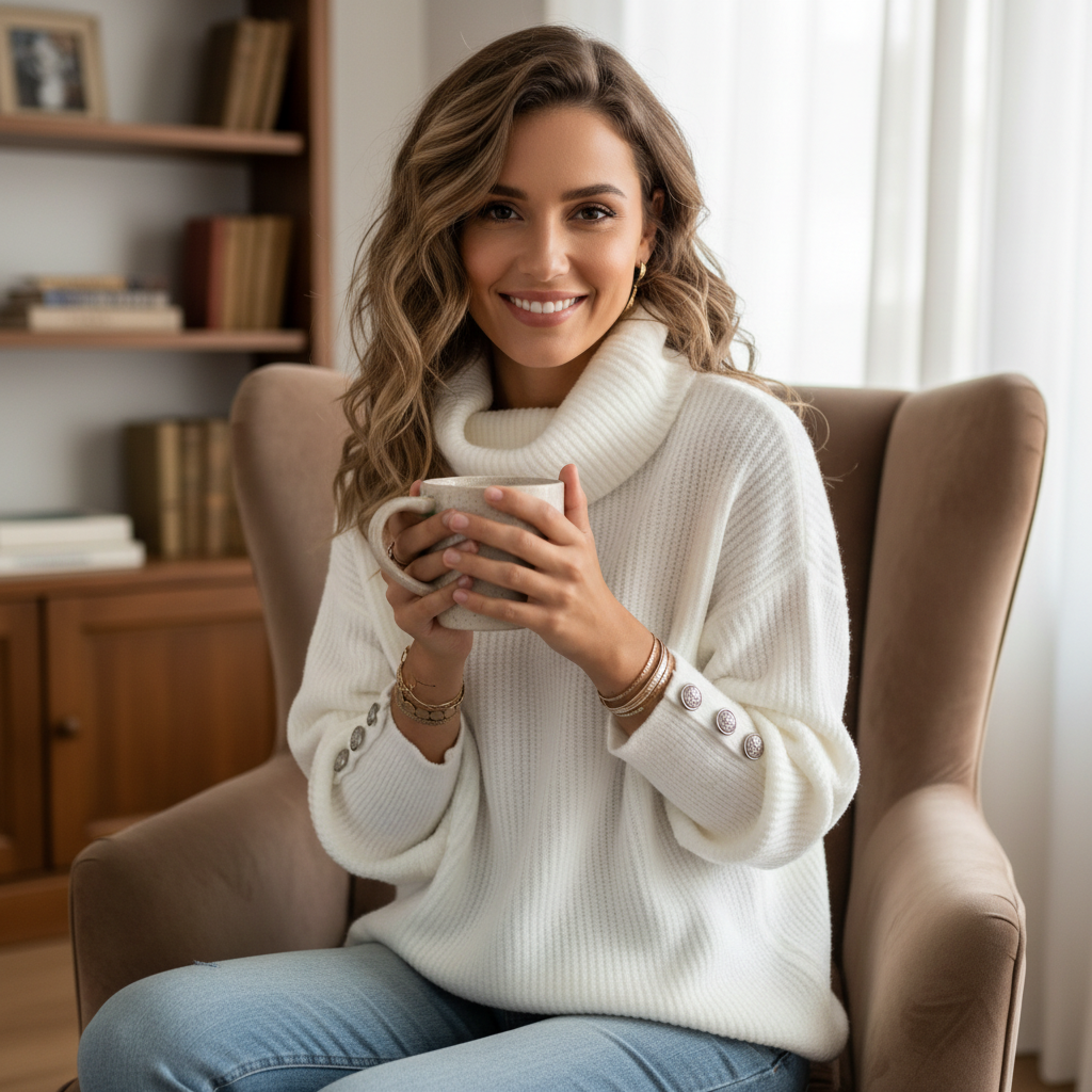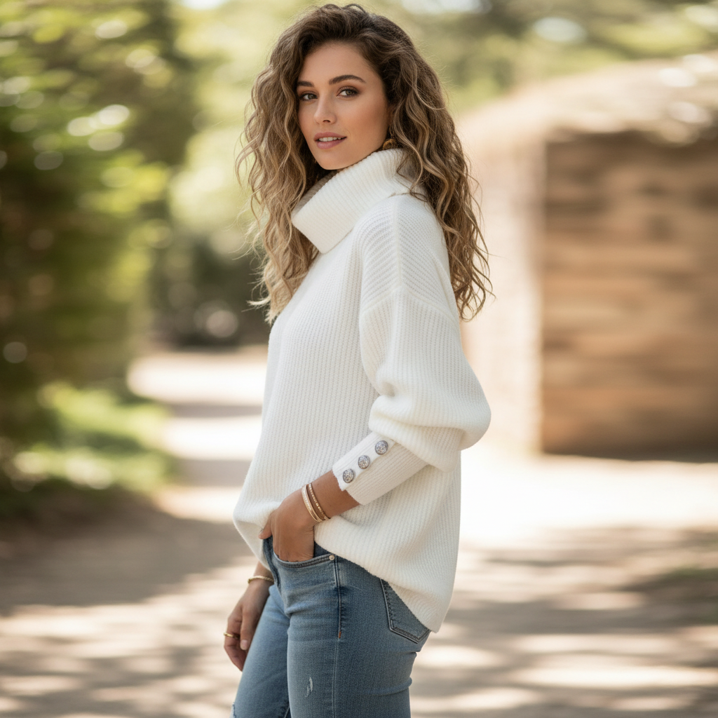 Luna - Comfortabele Gebreide Coltrui voor Dames met Knopen